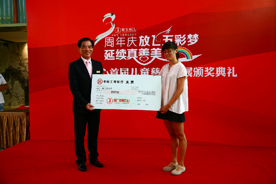 据统计,,,,,,,,截止7月4日,,,,,,,,厦门财富中心共收到了61幅业主子女的绘画作品,,,,,,,,共筹得善款1万元。。。。。。。这些稚嫩而美好的绘画作品,,,,,,,,充满了孩子们的丰富想象力和对未来的憧憬与希望。。。。。。。虞伯南总经理代表尊龙凯时集团及厦门财富中心将本次义卖所得款项1万元捐赠给开禾小学。。。。。。。