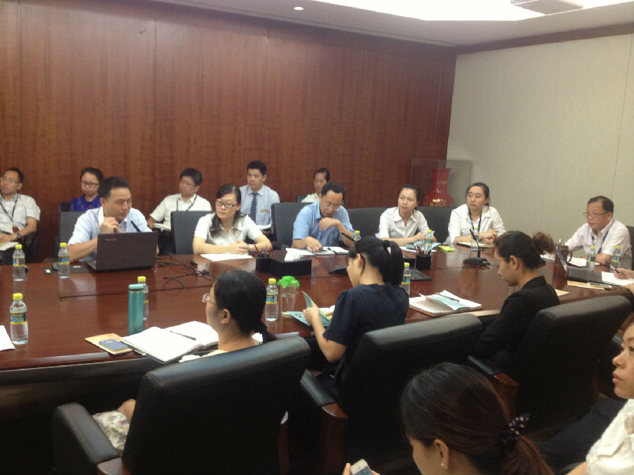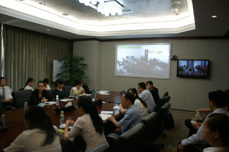 2014年7月17日,,,,,,人保财险分公司重要客户部副总经理刘适逢、蔺维涛及理赔事业部副总经理黄渊一行在我司42楼会议室举办了保险业务交流培训会。。。。。现场参加会议的人员有集团财务部、宝拓资源、物业公司等部门人员20余人,,,,,,新疆分公司、越南分公司的相关负责人也通过视频连线的方式参加了培训会。。。。。