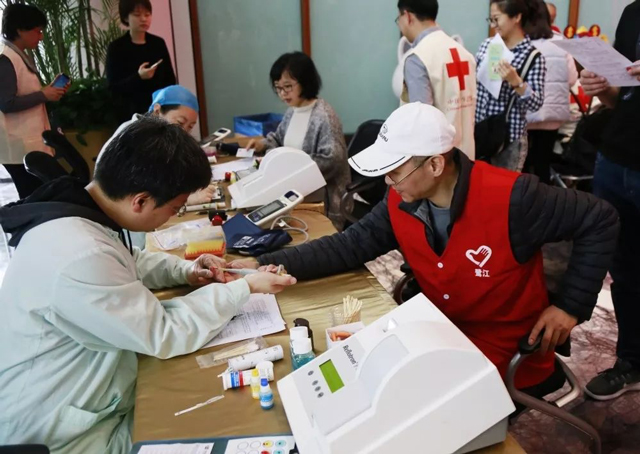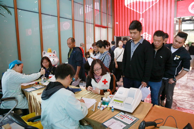 ? ? ? ? 随后,,,,,献血活动正式开始,,,,,数十名爱心人士早早来到活动现场,,,,,在市中心血站工作人员的引导下,,,,,有序地进行信息登记、测量血压、鉴定血型、血样初筛和抽血。。。。。。。。参与献血的爱心人士中,,,,,有来自财富中心大厦入驻员工,,,,,也有周边写字楼白领和附近爱心居民;;;;;有多次献血的爱心达人,,,,,也有初次献血的新生力量;;;;;有身体强健的男士,,,,,也有巾帼不让须眉的女士,,,,,他们用自己的涓涓热血传递爱的奉献。。。。。。。。