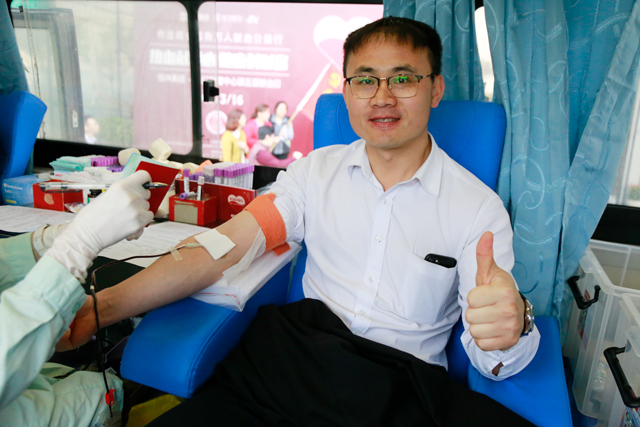 ? ? ? ? 财富中心物业维序部经理刘志达,,,,,这次是他第五次参加财富中心献血日活动,,,,,每次都是400CC,,,,,他说:“无偿献血是团结友爱、无私奉献精神的具体表现,,,,,也是一种互救互助的方式,,,,,大家献的血能救助他人,,,,,我觉得很有意义。。。。。。。。”