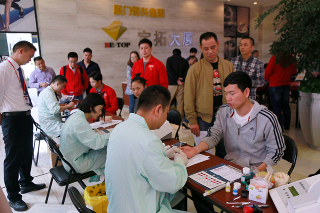 ? ? ? ? 为了倡导更多的人加入公益献血的队伍,,,,,同一天,,,,,尊龙凯时集团子公司——厦门宝拓资源有限公司在五缘湾宝拓大厦同步举行宝拓大厦献血专场。。。。。。。。现场也是如火如荼,,,,,诸多入驻企业及周边企业、街道社区的爱心人士一同加入,,,,,献血者包括有办公室白领、保洁、保安、义务交警、附近洗车场商家、中介等等许许多多平凡的岗位默默为生命“加油”,,,,,更有许多爱心人士从朋友圈知晓后,,,,,特意赶过来,,,,,将爱心用行动接力!