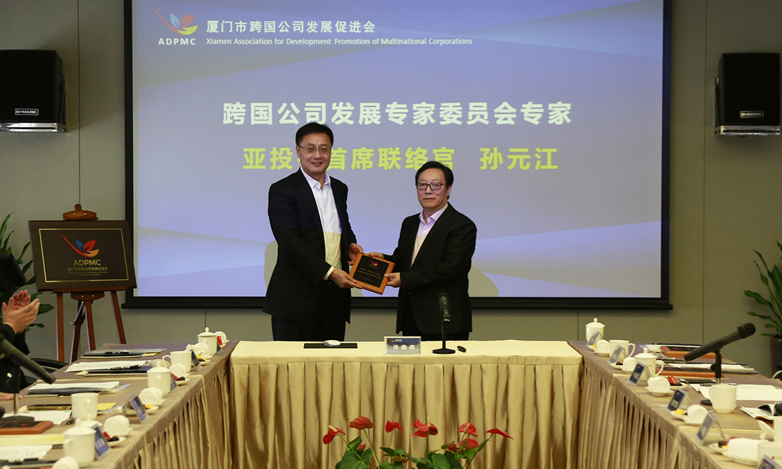 专家委员会召集人钟兴国博士为亚投行首席联络官、商务部国际司原副司长孙元江司长授予跨国公司发展专家委员会专家牌匾。。。。。