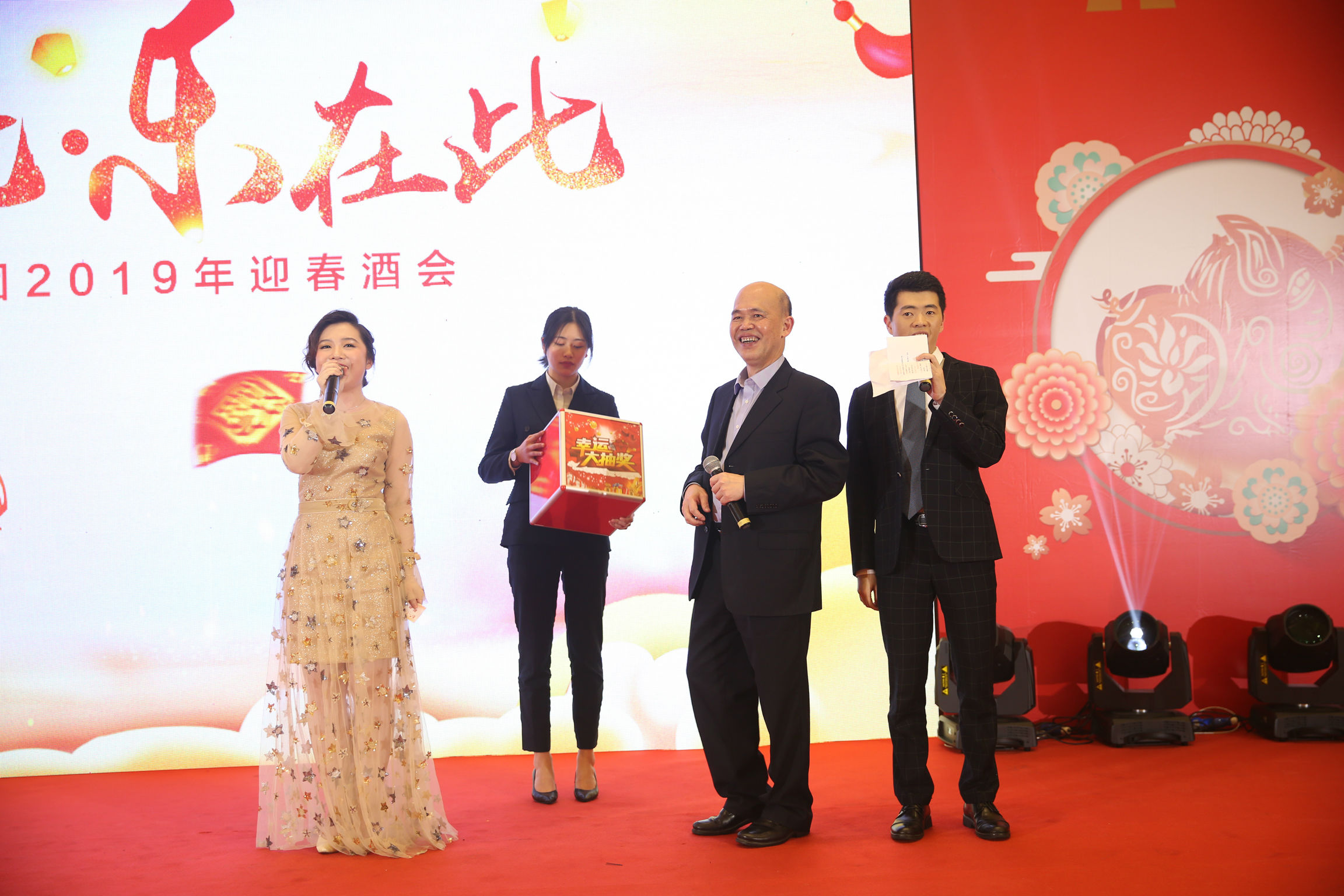 晚会分为两个部分——颁奖典礼和迎春晚会。。。。。。振奋人心的颁奖仪式现场表彰了2018年度尊龙凯时集团“十佳员工”、“优秀管理者”、“优秀团队”及“突出贡献奖”和“董事长提名奖”,,,,,,,,各位高管轮番上台为获奖个人及团队颁奖,,,,,,,,感谢他们在过去一年里辛苦的工作。。。。。。这隆重的颁奖典礼,,,,,,,,不仅是对获奖者去过一年工作的肯定与嘉奖,,,,,,,,也是对所有员工的激励与鼓舞。。。。。。随后,,,,,,,,柯希平董事长上台致辞,,,,,,,,对现场的来宾和同事们表达感谢和新春的祝福,,,,,,,,并邀请大家一同举杯。。。。。。在现场的欢呼声与掌声中,,,,,,,,正式宣布晚宴开席。。。。。。