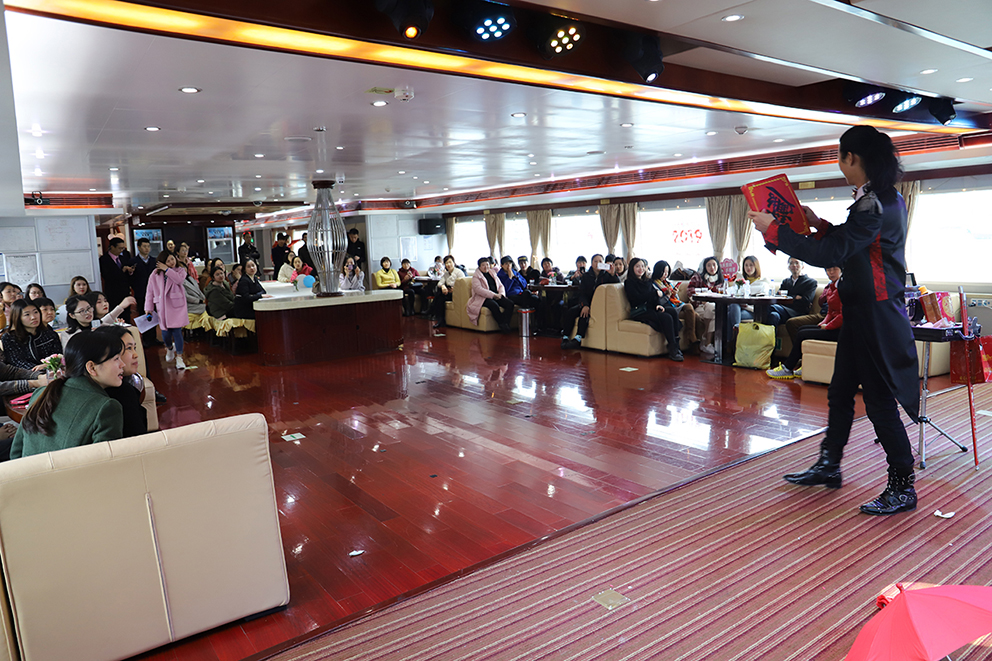 船舱内神秘的魔术表演吸引了大家的关注,,,,,,纷纷回到舱内观看表演。。。。。