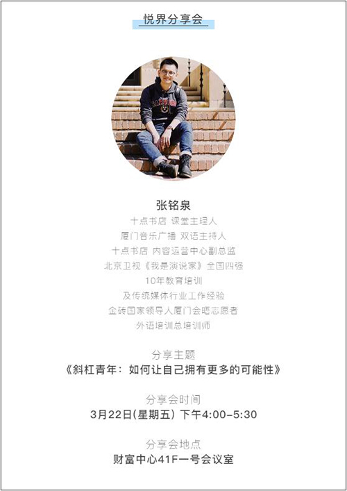 我们将以“赋能”、“家”、“协作”、“活力”为主题,,,,,,,,开展四场高管分享会和四场悦界分享会。。。。。。