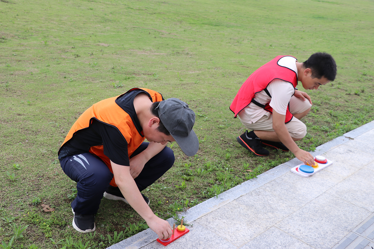 接下来,,,,,在教练的带领下,,,,,大家又陆续完成“奔跑吧”这一项目中的一系列团队活动,,,,,每队拿到任务卡后,,,,,到达指定的场所,,,,,找到交接人,,,,,挑战相应任务,,,,,完成通关挑战后即可拿到拼图图块。。。。。。。整个过程中,,,,,大家热情高涨,,,,,全力投入,,,,,响亮的口号声、热烈的掌声和欢呼声此起彼伏,,,,,印证大家群情激昂、努力拼搏的团队精神。。。。。。。最后4组队员纷纷完成挑战,,,,,并在现场共同拼出了“同心筑梦 齐力奋进”的主题拼图。。。。。。。