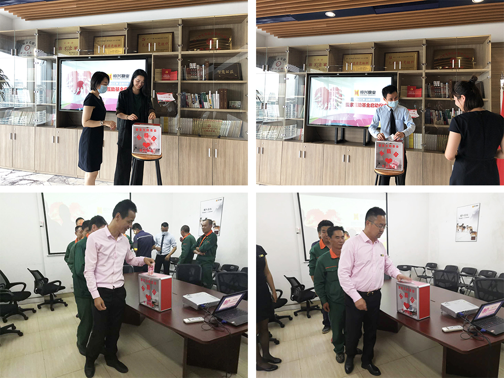 紧接着现场进行“爱家互助基金”首次募捐活动,,,,,宋维超总经理、林雅琦副总经理及各部门负责人带头捐款,,,,,员工们也纷纷积极响应,,,,,踊跃将捐款投入到爱心捐款箱中,,,,,捐款现场洋溢着温馨友爱的氛围。。。。。。。现场的募捐活动以不记名、自愿原则、现金形式开展(捐款基数5元起),,,,,最后两个项目共募集捐款1915元。。。。。。。