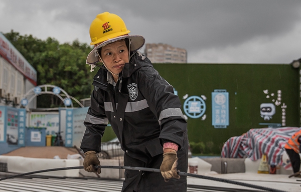 工人在雨中作业