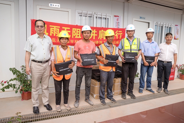 进入五月,,,,,,,,气温逐渐升高,,,,,,,,厦门的雨季也随之到来。。。。。。。为保障一线建筑工人作业安全,,,,,,,,同时保证施工进度不受雨季影响,,,,,,,,华东师范大学希平双语学校建设方向施工单位和监理单位共600余名一线管理人员和建筑工人赠送了雨季物资。。。。。。。