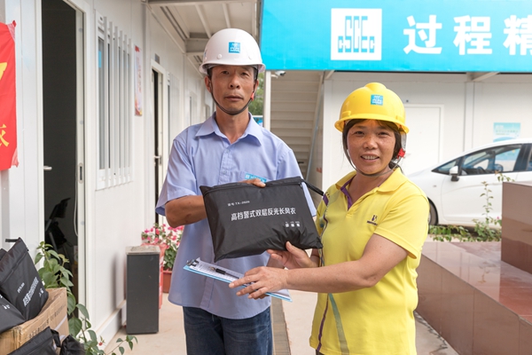 安全是项目建设的重中之重。。。。。。。对于一线建筑工人而言,,,,,,,,雨天作业不仅增大了施工难度,,,,,,,,也增加了危险系数。。。。。。。为此,,,,,,,,华东师范大学希平双语学校在雨季来临之前,,,,,,,,筹集了2000件雨衣,,,,,,,,免费发放给施工现场的管理人员和各班组工人,,,,,,,,在雨天等特殊作业环境下,,,,,,,,为工人提供有效的健康和安全保障。。。。。。。