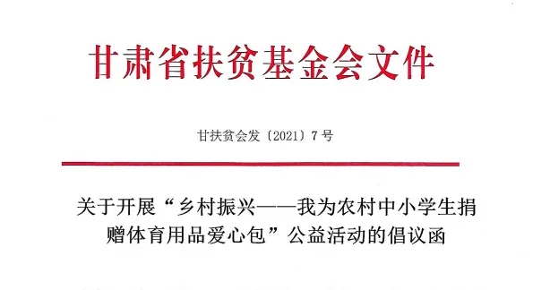 “乡村振兴—我为农村中小学生捐赠体育用品爱心包”是由甘肃省扶贫基金会发起的全省内为偏僻乡村中小学留守儿童捐赠基础体育器械和益智用品的公益活动。。。。。。以促进全省农村义务教育阶段学生及留守儿童健康成长为宗旨,,,,,,积极引导动员社会力量为全省偏远山区和农村中小学生捐赠“体育用品爱心包”,,,,,,切实提高甘肃省“偏远山区、寄宿学校”留守儿童“德、智、体”全面发展,,,,,,改善农村中小学生体育用品的匮乏现状。。。。。。