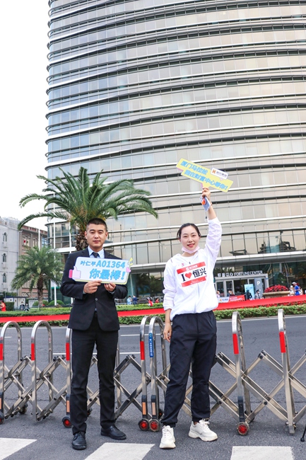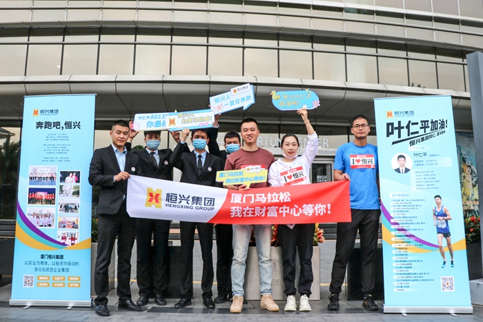 当天早上8:00,,,,,,,集团公司组成的助威团,,,,,,,在厦门财富中心门口为参赛职工加油打气,,,,,,,见证其全力以赴奔向更好的自己,,,,,,,也共同见证这场高品质、高颜值的赛事!