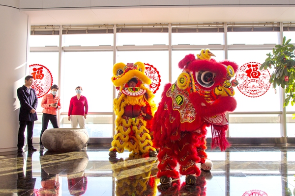 隆重精彩的舞狮表演活动,,,,,,,成为集团公司和财富中心大楼正月初九的开年必备,,,,,,,以此振奋精气神,,,,,,,醒年迎开市!2023瑞兽来贺,,,,,,,职场人踏步前行,,,,,,,奋斗者继续追光!